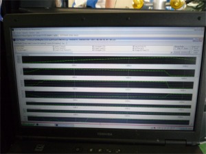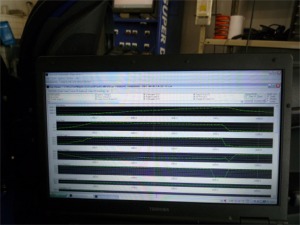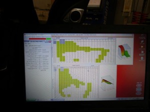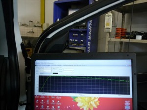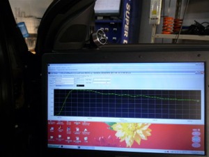 前回は、インタークーラーとコンピューターチューンで336馬力、46.6キロのトルクだったのですが、 今回、排気系をビシッと揃えて、ブーストコントローラーを装着してリセッティング致しました。 一発でバシッと好結果が出ました。 |