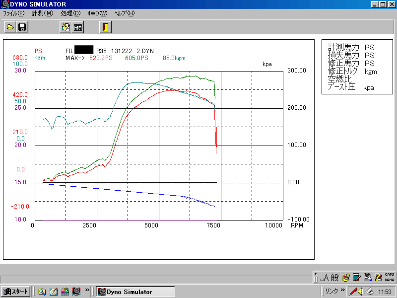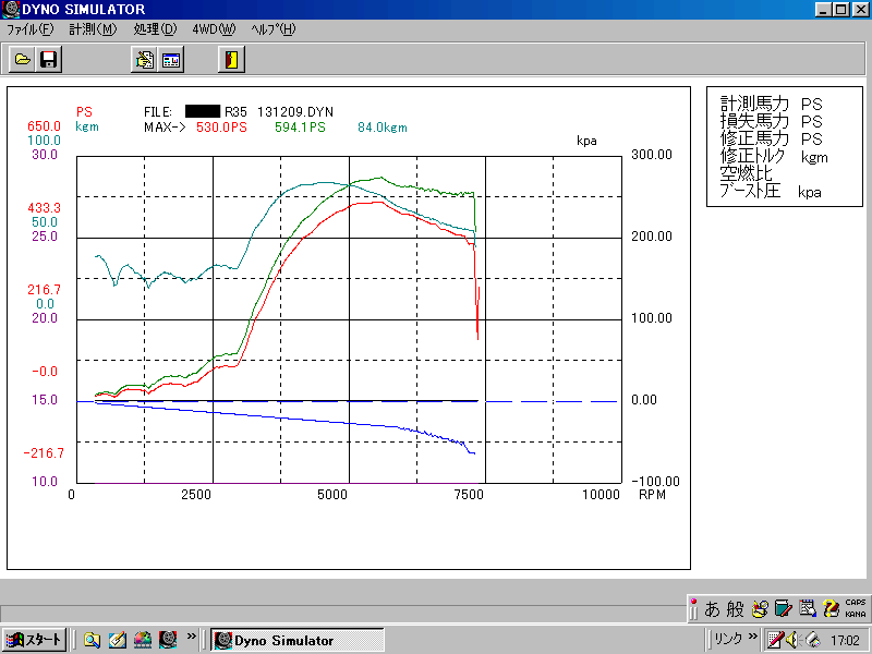 ブースト圧は低めで無理はしてませんが、しっかり目標通りのパワーになりました。